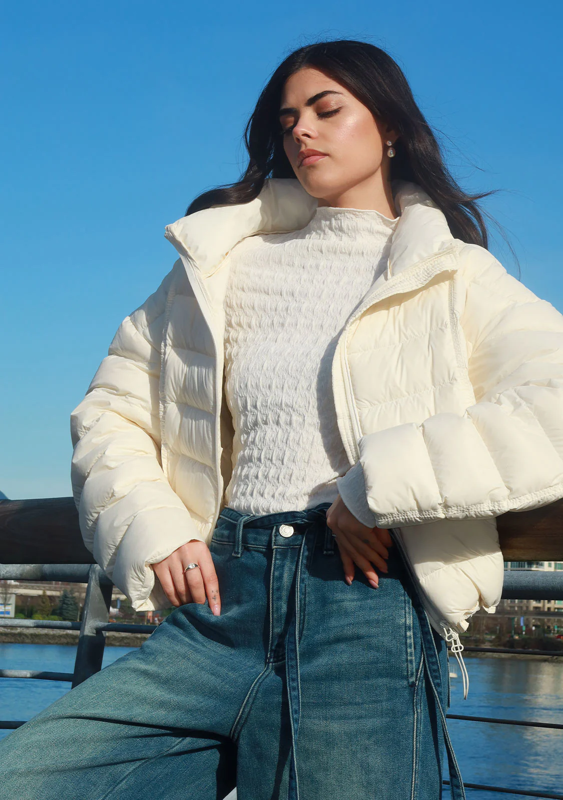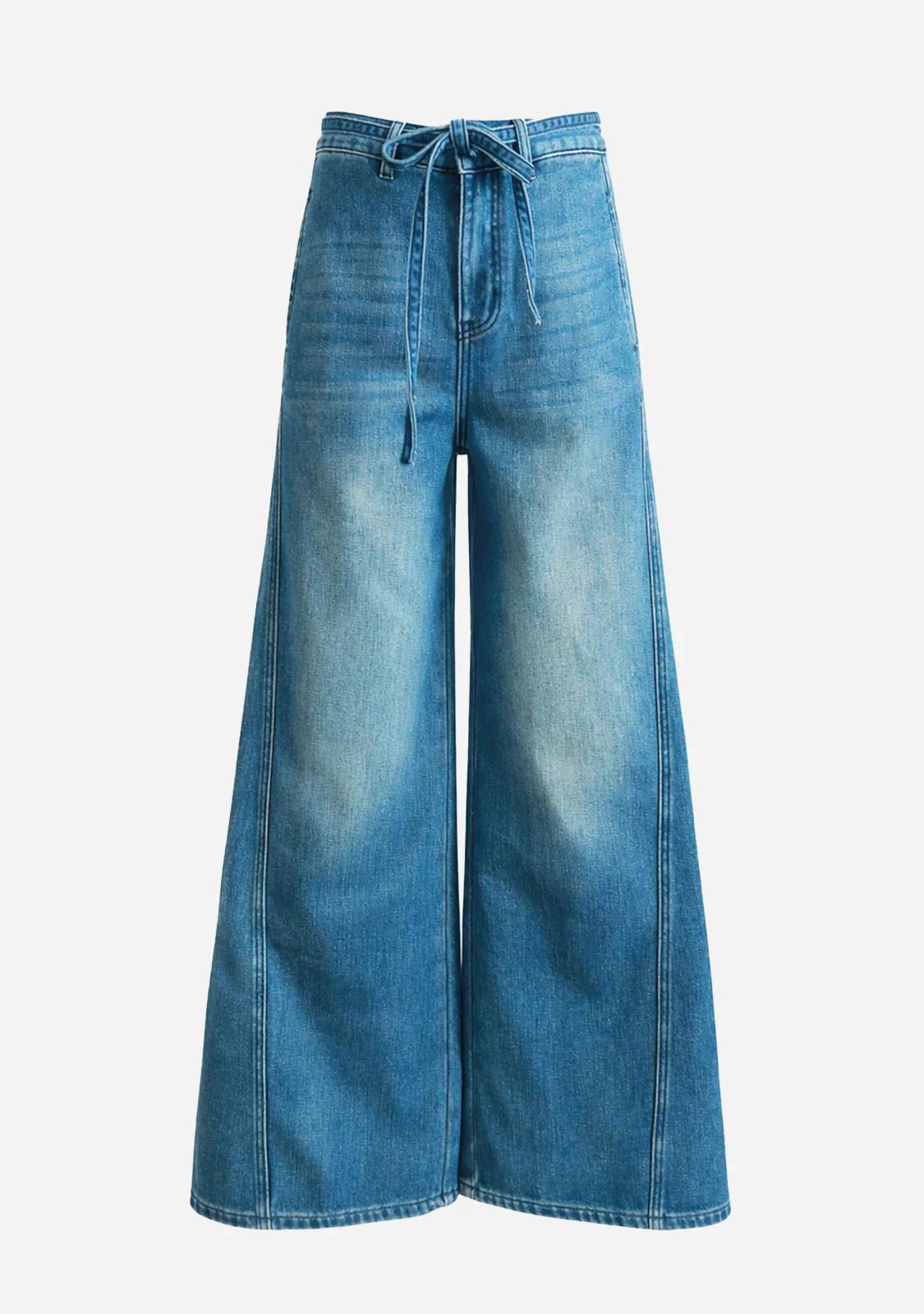 Wide-Leg Seam Detail Denim in Denim Blue